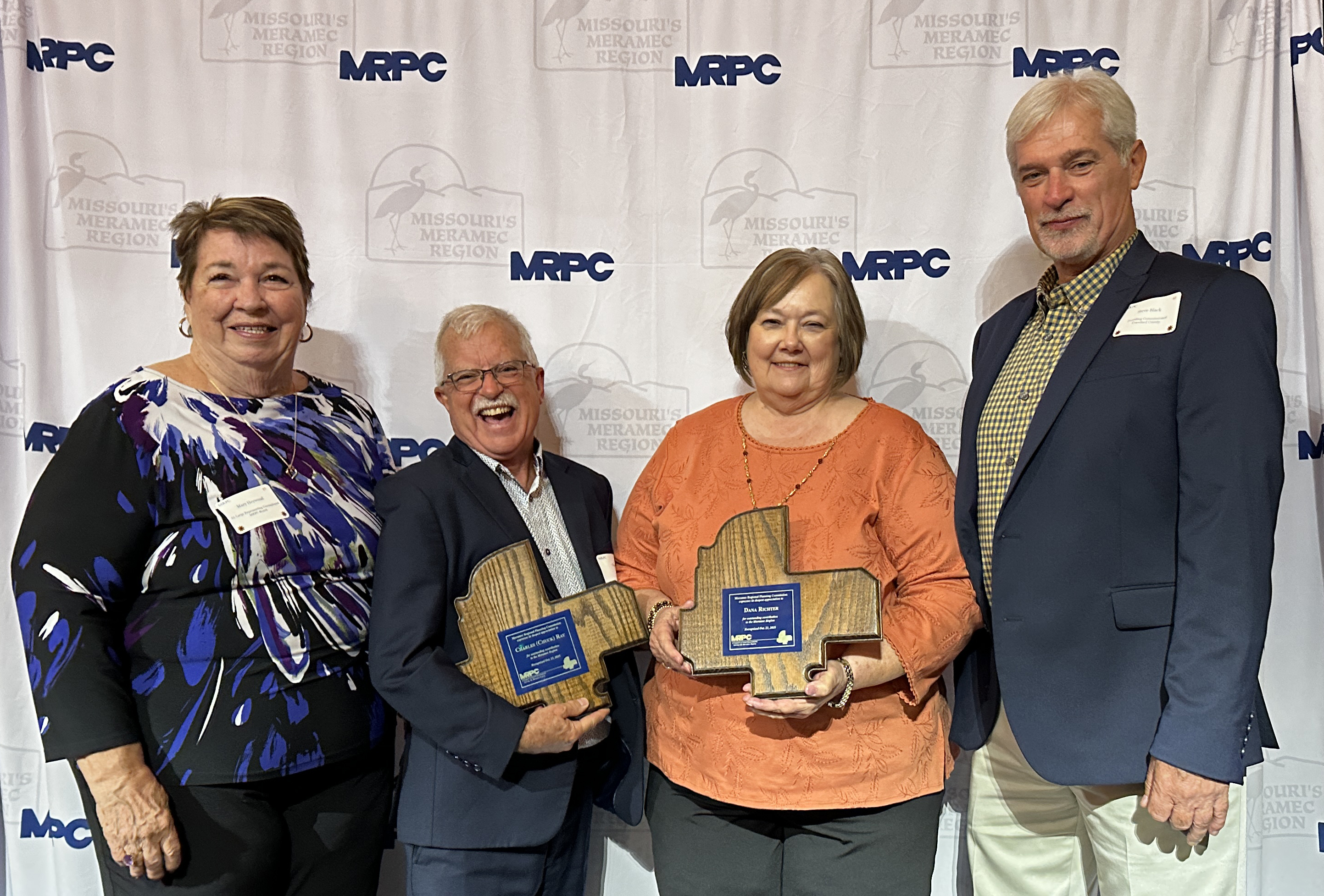 ST. JAMES—Charles “Chuck” Ray and Dana Richter were honored with outstanding community service awards during the Meramec Regional Planning Commission’s (MRPC) Annual Dinner and Awards Banquet, held Oct. 23 at the Salem Community Center @ the Armory. Each year, MRPC honors residents, local agency representatives and local elected officials in the Meramec Region who contribute to their communities by volunteering their time, talents and support going above and beyond the call of duty. This year’s event was hosted by Dent County, the City of Salem and the Salem Community Center @ the Armory.