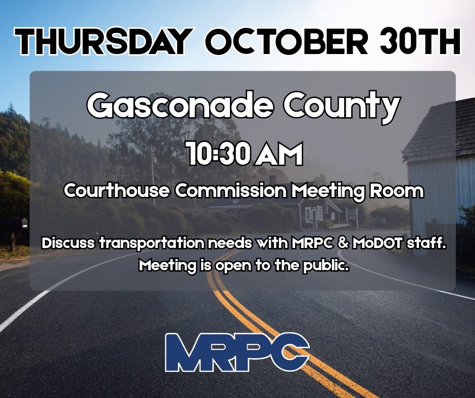 ST. JAMES—Meramec Regional Planning Commission (MRPC) Executive Director Bonnie Prigge, Planning Manager Anne Freand and Missouri Department of Transportation (MoDOT) Meramec Area Engineer Preston Kramer will meet with Gasconade County commissioners and citizens to discuss transportation needs on the state system Oct. 30, 2025, at the Gasconade County Courthouse commission meeting room, 119 E. First St., Hermann. The meeting will start at 10:30 a.m.